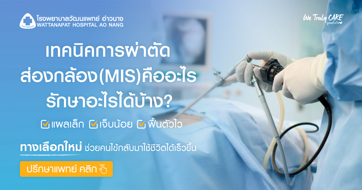 MIS หรือ การผ่าตัดแบบแผลเล็ก เป็นวิธีการผ่าตัดที่ใช้กล้องขนาดเล็กและอุปกรณ์พิเศษที่สอดผ่านแผลผ่าตัดขนาดเล็ก (ประมาณ 0.5 – 2 เซนติเมตร) เข้าไปในร่างกาย เช่น ช่องท้อง ช่องอก หรือช่องกระดูกสันหลัง เพื่อทำการรักษาหรือแก้ไขความผิดปกติในอวัยวะต่างๆ โดยแพทย์จะทำการควบคุมอุปกรณ์ผ่านจอภาพความละเอียดสูง ซึ่งช่วยรักษาความแม่นยำและปลอดภัยในการผ่าตัด