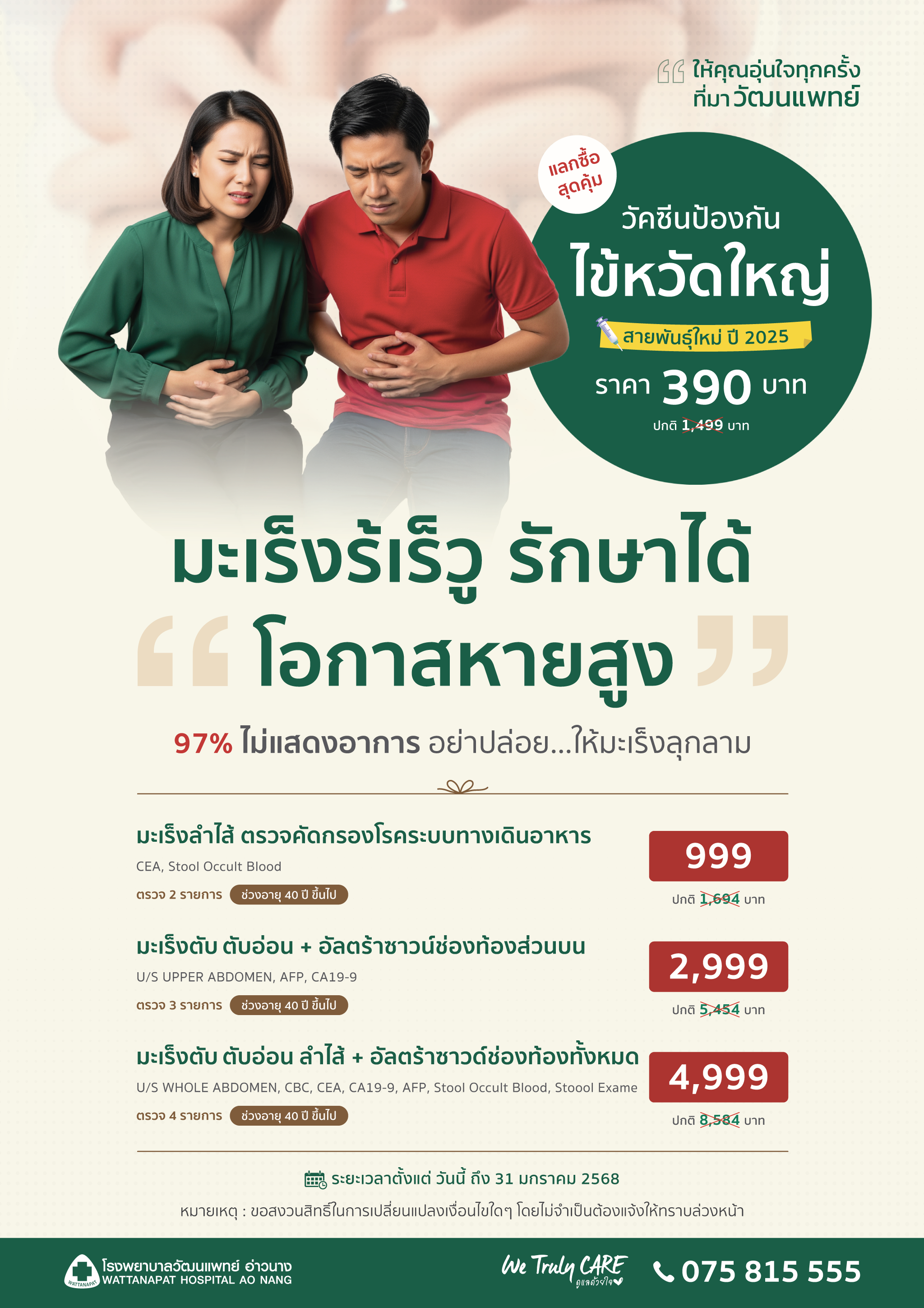 การตรวจคัดกรองมะเร็งทางเดินอาหารและตับเป็นก้าวสำคัญในการป้องกันโรคร้ายที่มักไม่มีสัญญาณเตือนในระยะแรก การตรวจอย่างสม่ำเสมอช่วยค้นหาความผิดปกติได้ตั้งแต่ต้น เพิ่มโอกาสรักษาหายและลดความเสี่ยงการเกิดภาวะแทรกซ้อนรุนแรง เหมาะสำหรับผู้ที่มีอายุ 40 ปีขึ้นไป หรือมีปัจจัยเสี่ยง เช่น ไขมันพอกตับ ตับอักเสบเรื้อรัง สูบบุหรี่ ดื่มแอลกอฮอล์ หรือมีประวัติครอบครัวเป็นมะเร็ง ควรให้ความสำคัญกับการตรวจคัดกรองตั้งแต่วันนี้เพื่อสุขภาพระยะยาว และเพิ่มโอกาสป้องกันโรคก่อนเกิดอาการ