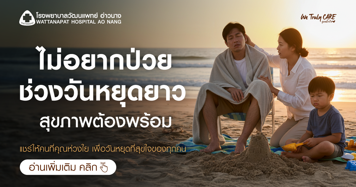 ช่วงวันหยุดยาวเป็นช่วงเวลาที่หลายคนรอคอย ไม่ว่าจะเป็นการเดินทางท่องเที่ยว พักผ่อนกับครอบครัว หรือกลับไปเยี่ยมญาติ แต่ในความสุขนั้น หาก “ป่วยกะทันหัน” อาจทำให้แผนทั้งหมดต้องสะดุด การเตรียมร่างกายให้พร้อมก่อนหยุดยาวจึงเป็นสิ่งสำคัญ ที่ช่วยลดความเสี่ยงการเจ็บป่วยและทำให้วันหยุดเต็มไปด้วยความสุขอย่างแท้จริง