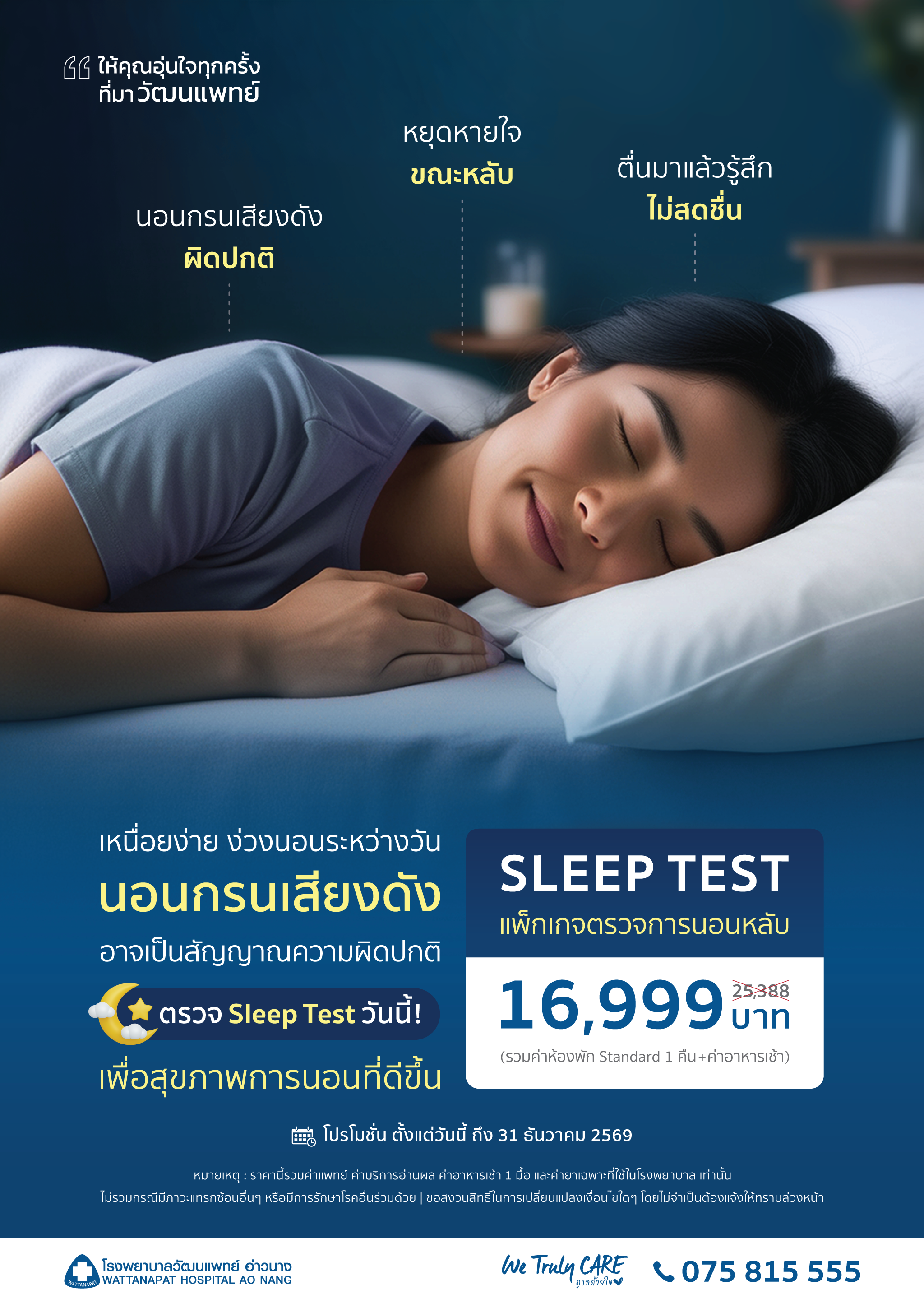 การตรวจการนอนหลับ (Sleep Test) เป็นการตรวจเพื่อสังเกตการทำงานของร่างกายขณะนอนหลับ ผลการตรวจช่วยการวินิจฉัยโรคและประเมินระดับความรุนแรงของโรคได้ เช่น โรคหยุดหายใจขณะหลับชนิดอุดกั้น การกระตุกของกล้ามเนื้อต่างๆ และพฤติกรรมที่ผิดปกติระหว่างการนอนหลับ ข้อมูลที่ได้จะนำมาพิจารณาวางแผนหรือติดตามการรักษาให้ถูกต้องได้
